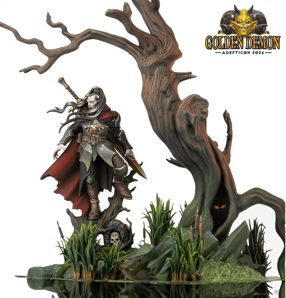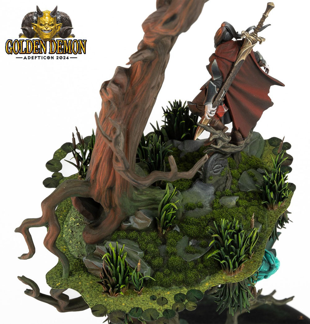 Alexandre Dos Santos won their 4th Golden Demon and 1st Slayer Sword with the entry The Hollow King in the Diorama & Duel category at AdeptiCon, Chicago, USA, 2024.