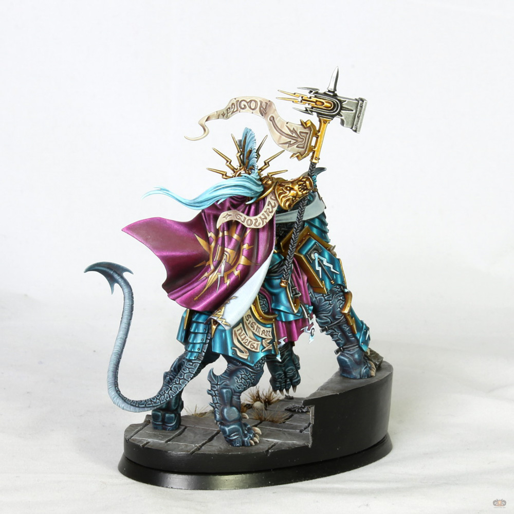 Gareth Nicholas won their 18th Golden Demon with the entry Celestant on Dracoth in the Warhammer Age of Sigmar: Single Miniature category at Warhammer Fest, Coventry, 2018.
