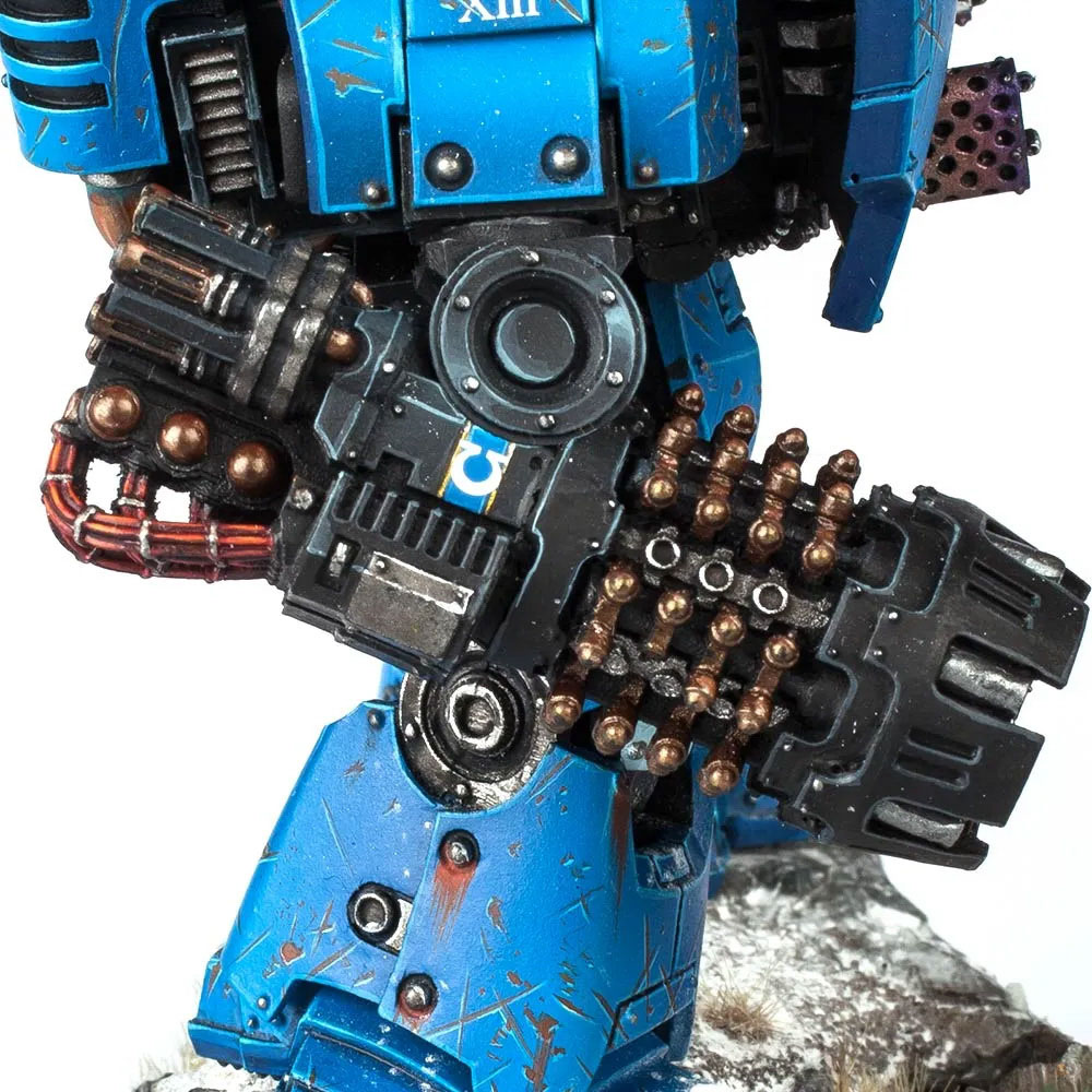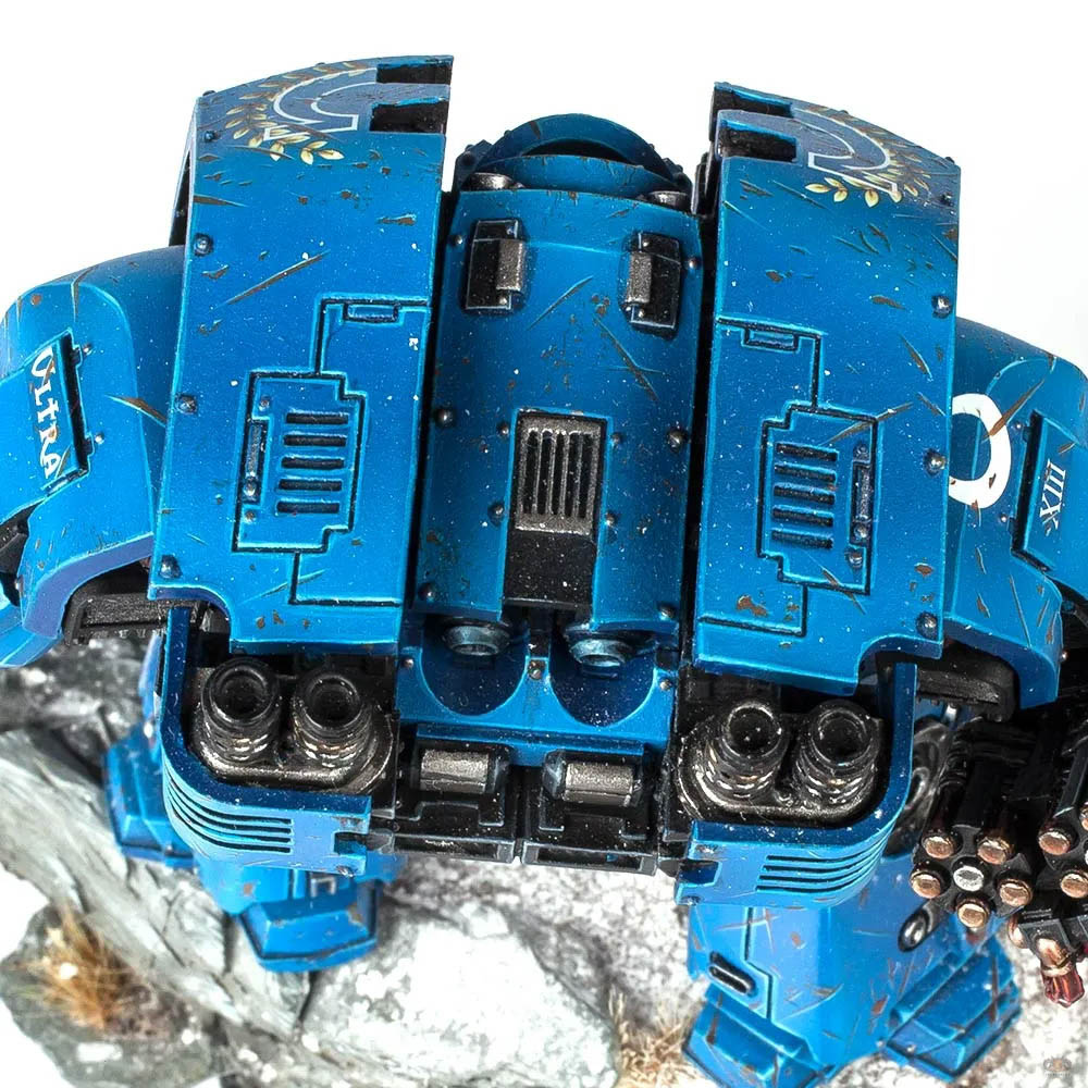 Andy Wardle won their 13th Golden Demon with the entry Ultramarines Leviathan pattern Siege Dreadnought in the Unbound category at The Horus Heresy Weekender, Nottingham, 2016.