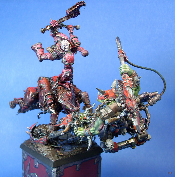 Nigel Carman won their 5th Golden Demon with the entry Khorne Bezerker Vs Ork Biker in the Duel category at Games Day, Birmingham, 2008.