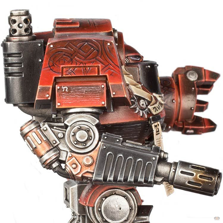 Angelo Di Chello won their 56th Golden Demon with the entry Word Bearers Contemptor Dreadnought - Sor Gharax - The Bull in the Warhammer 40,000: Vehicle category at Warhammer Fest, Coventry, 2016.