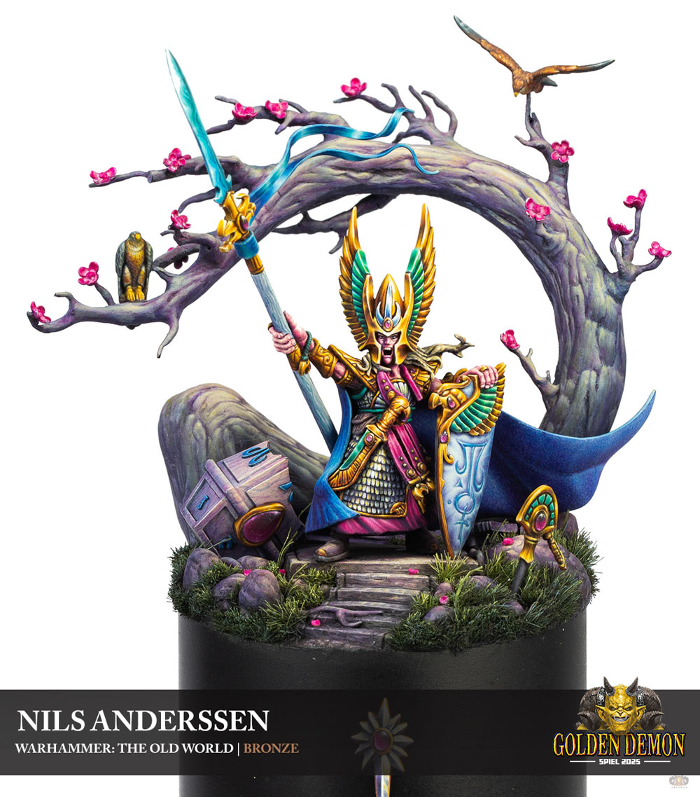 Nils Anderssen won their 1st Golden Demon with the entry High Elf Lord in the Warhammer: The Old World category at Spiel, Essen, Germany, 2025.