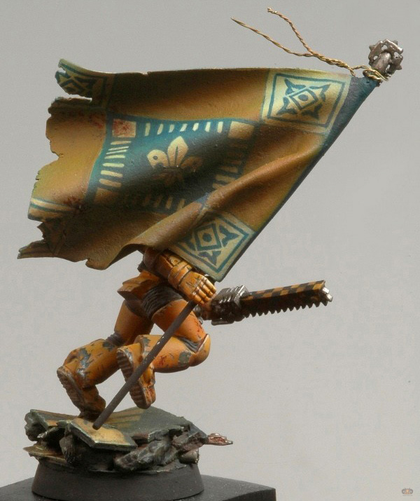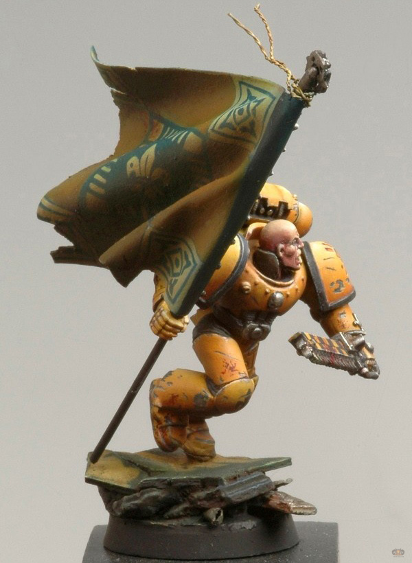 Rafael García Marín won their 4th Golden Demon with the entry Brother Fonsel Imperial Fists Standard Bearer in the Warhammer 40,000: Single Miniature category at Games Day, Cologne, 2008.